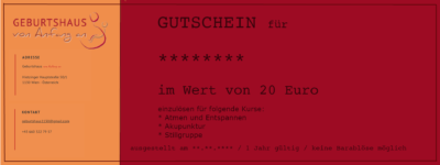 Bitte die Gutscheine unter unserer Email-Adresse geburtshaus1130@gmail.com anfragen und auf unser Geburtshauskonto überweisen: